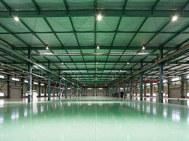 福島工場の建物面積は1万1000m2。独自の基礎システムにより、直接基礎で杭を打たずに大規模な建築物が作れるのは、スタンパッケージだけでした。